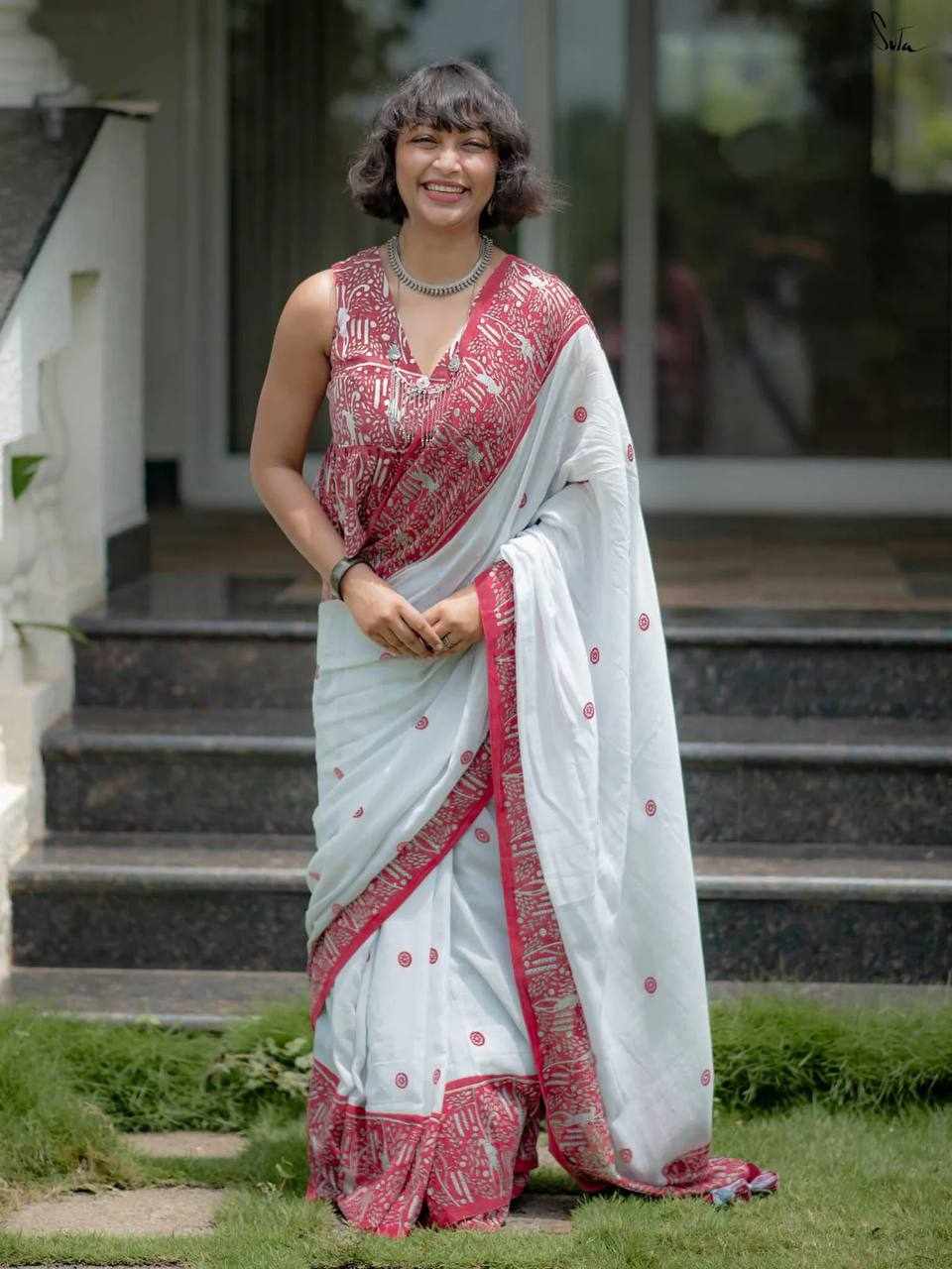 Saree Fabric: Premium Linen Cotton with beautiful digital print