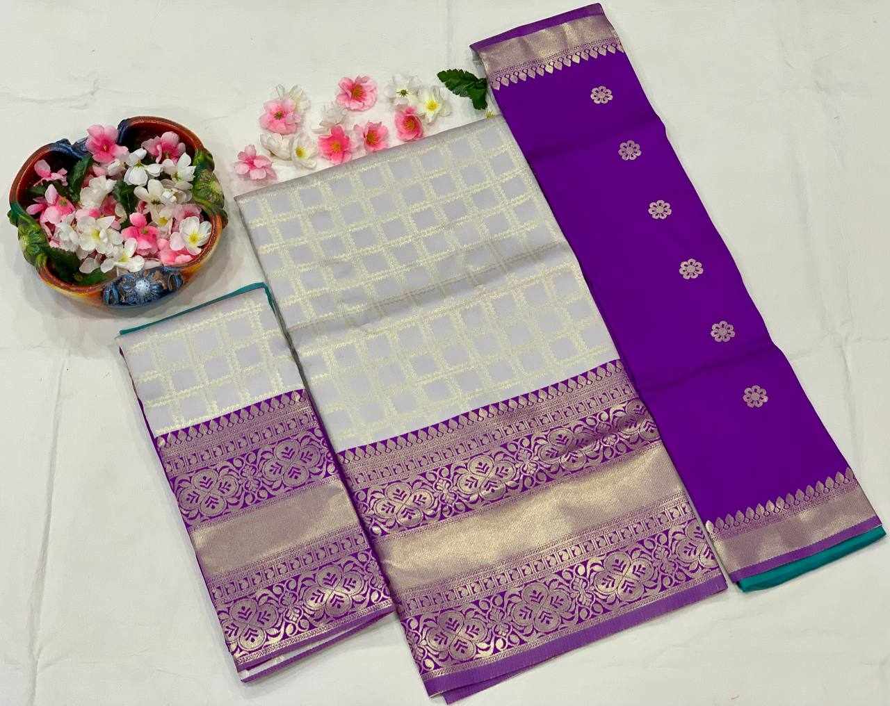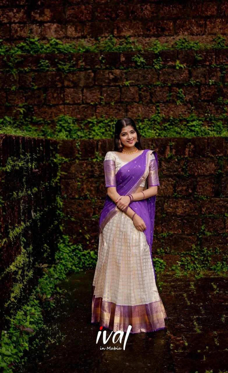 KP-W 352 Kanjiveram Silk Purple Colour Half Saree