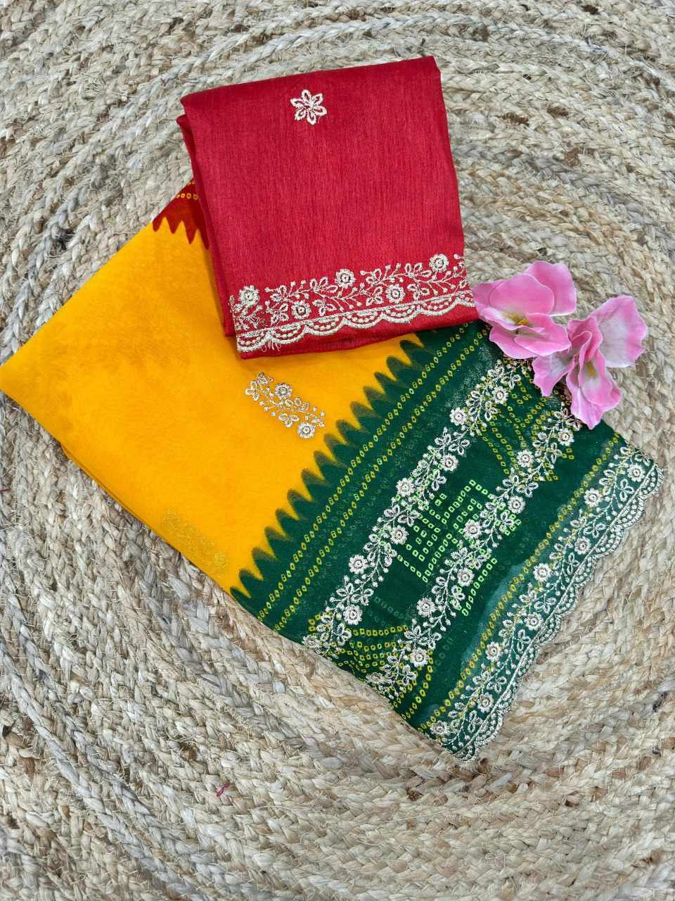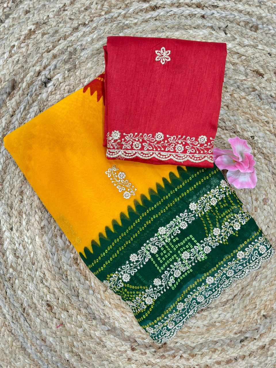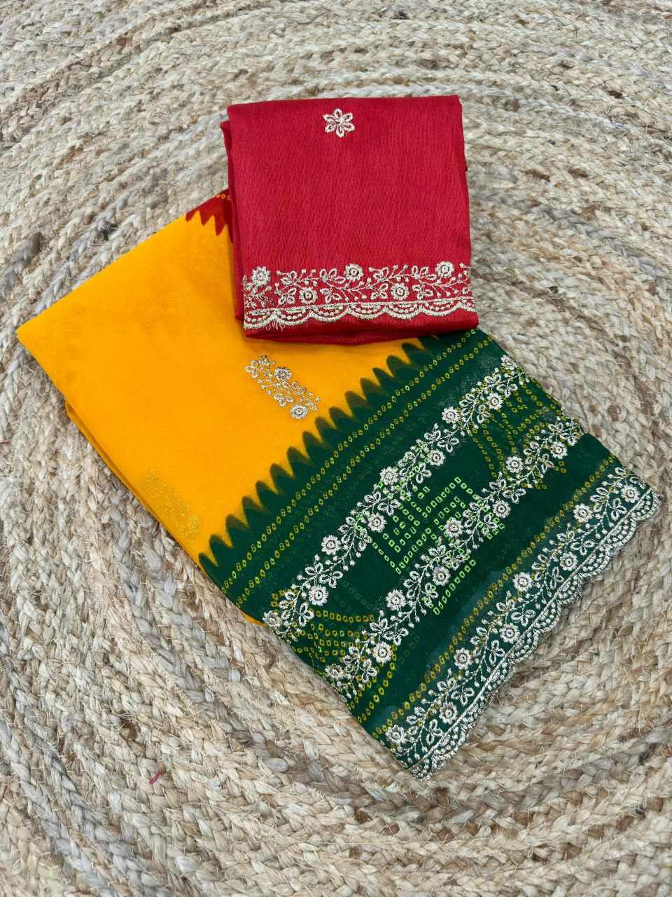 | Name : | PIYU P1052 LERIYA BANDHANI-1 Yellow-Green Saree |