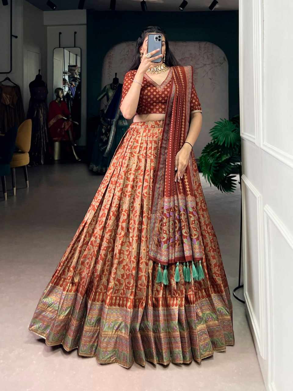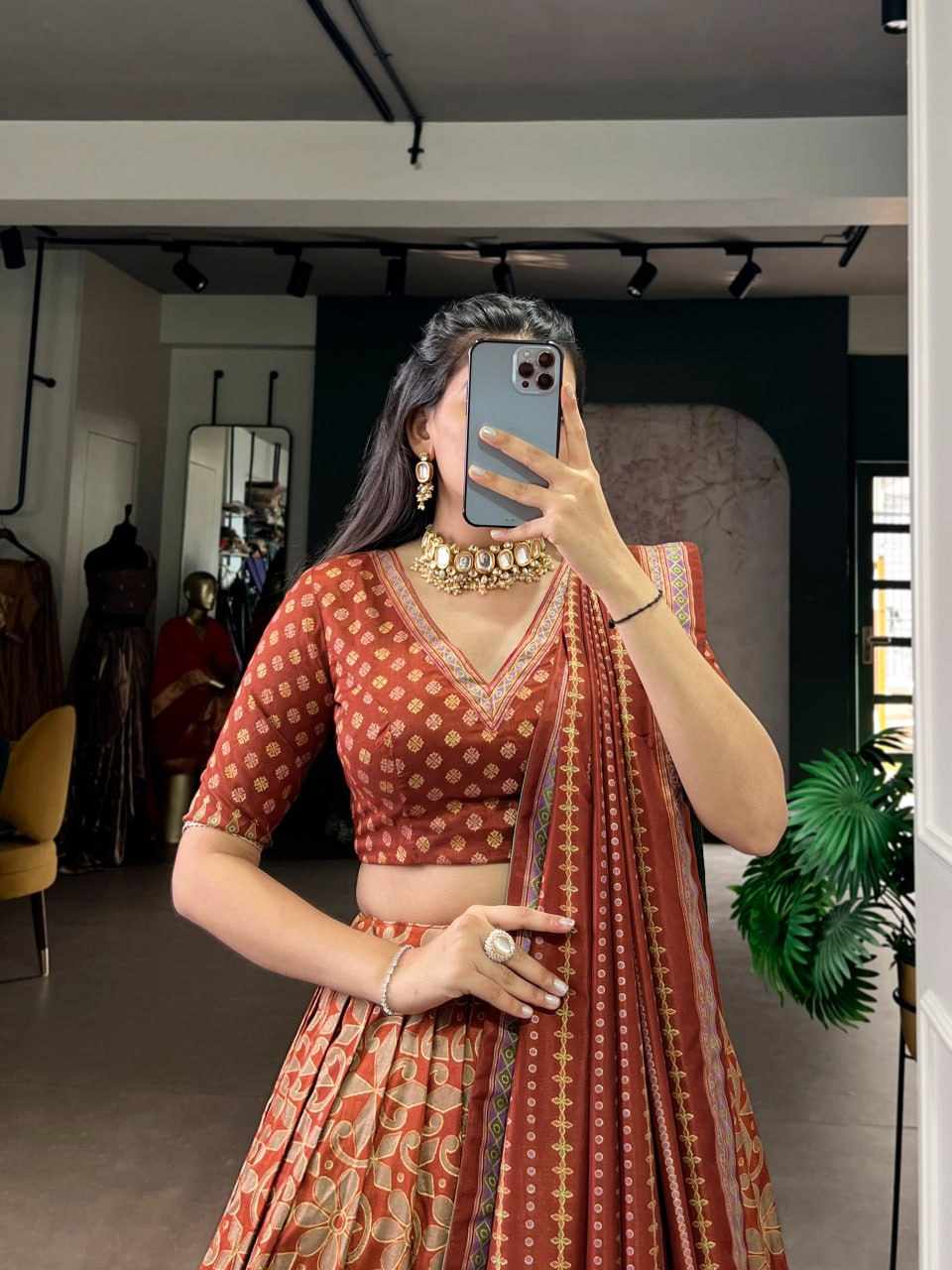 | Name : | PIYU 02-2 Silk Digital print Orange Lehnga |