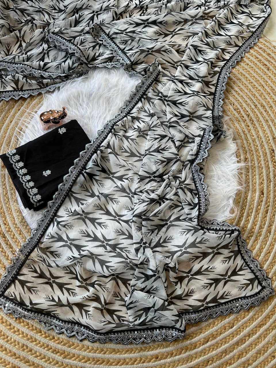Crafted with graceful georgette and detailed coding embroidery lace work, this saree gives a rich and classy look. Perfect for festive occasions, parties, weddings, and special celebrations.