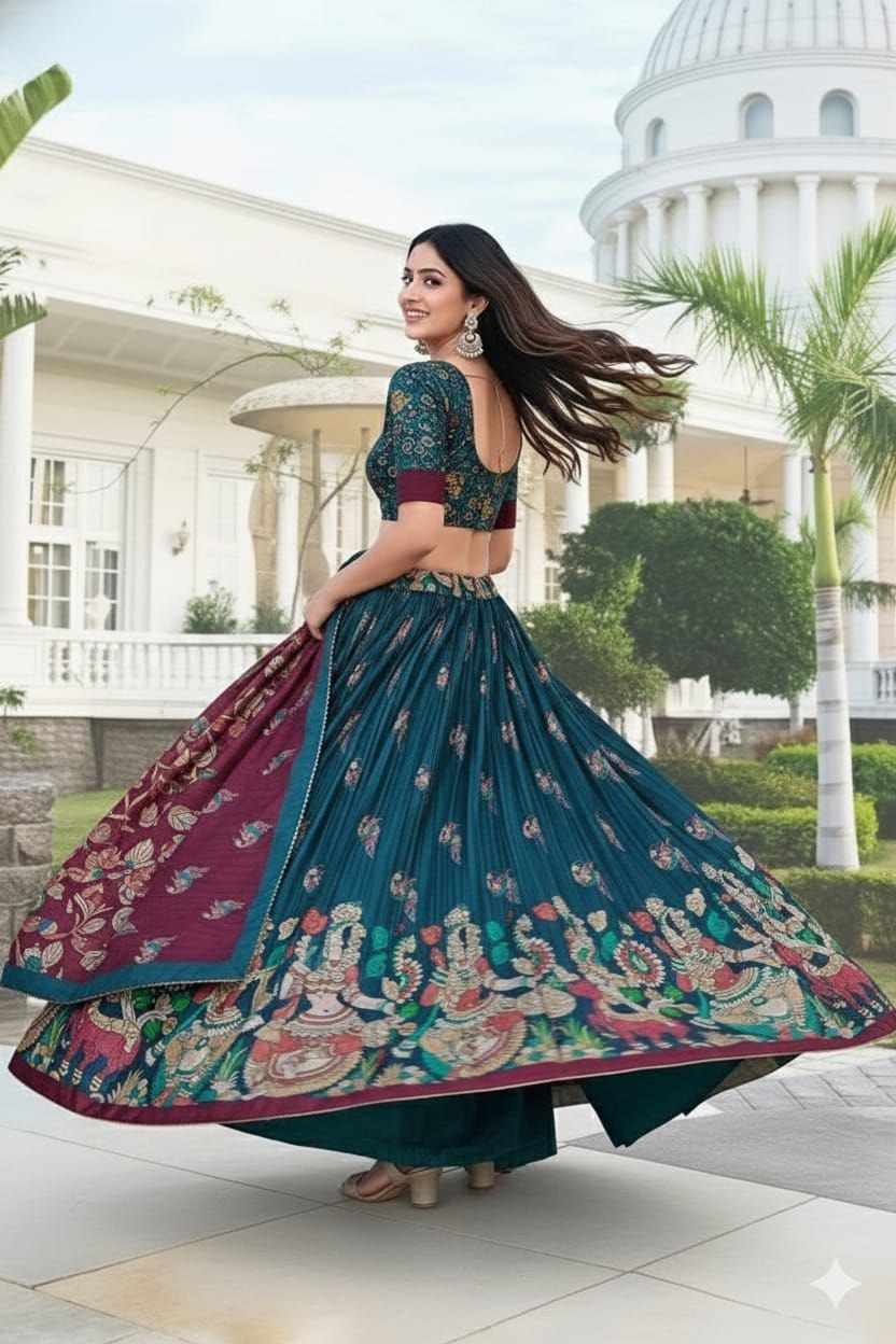 | Name : | PIYU 16-2 Silk Digital print Rama Colour Lehnga |